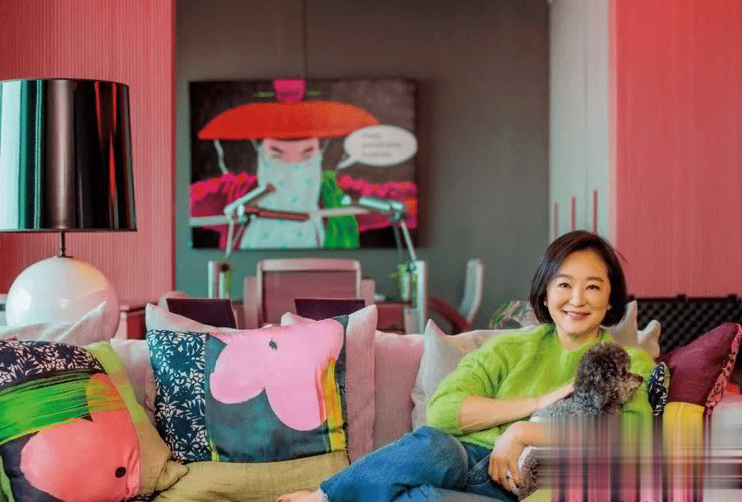 除了书房,她家客厅通过巧妙的色彩搭配、材质对比、艺术渗透和空间留白,营造出低调的奢华感。